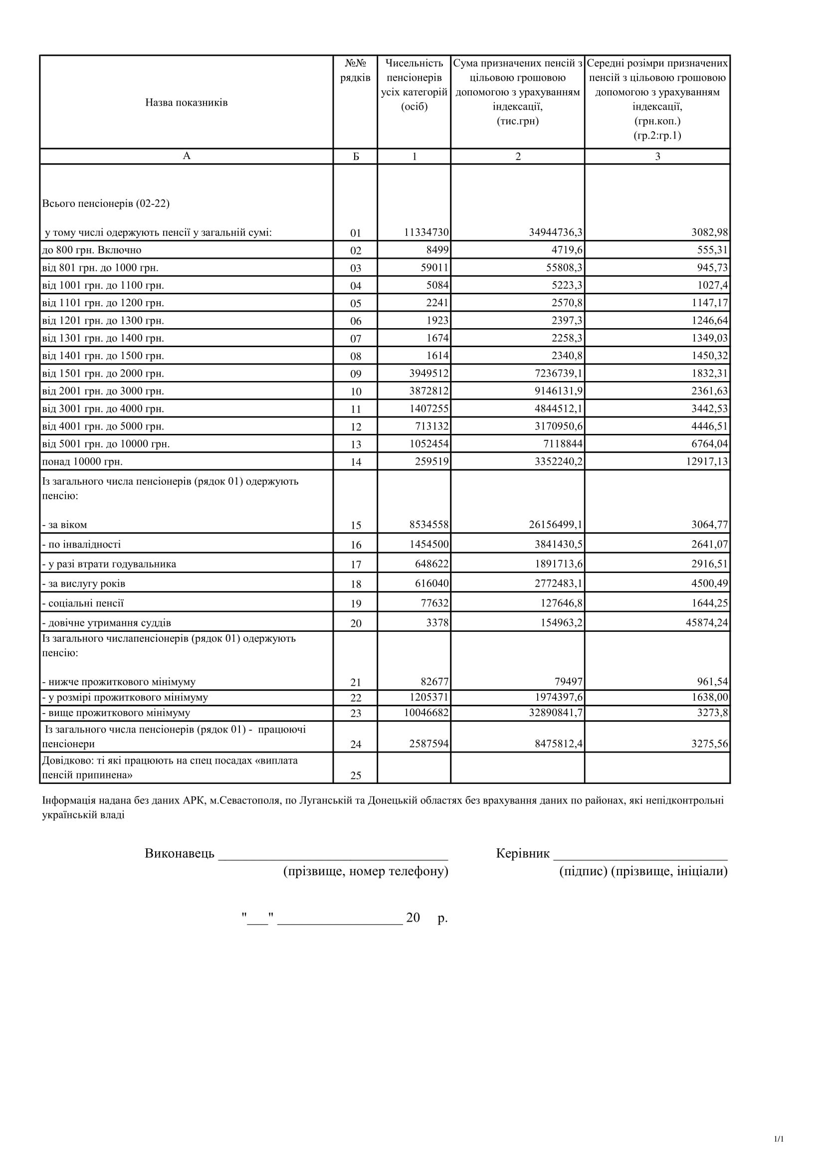 Головна / Статистика / Звітність за даними Реєстру застрахованих осіб / Звіт про розподіл пенсіонерів за розмірами призначених місячних пенсій станом на 01.01.2020 (форма № 5-ПФ)