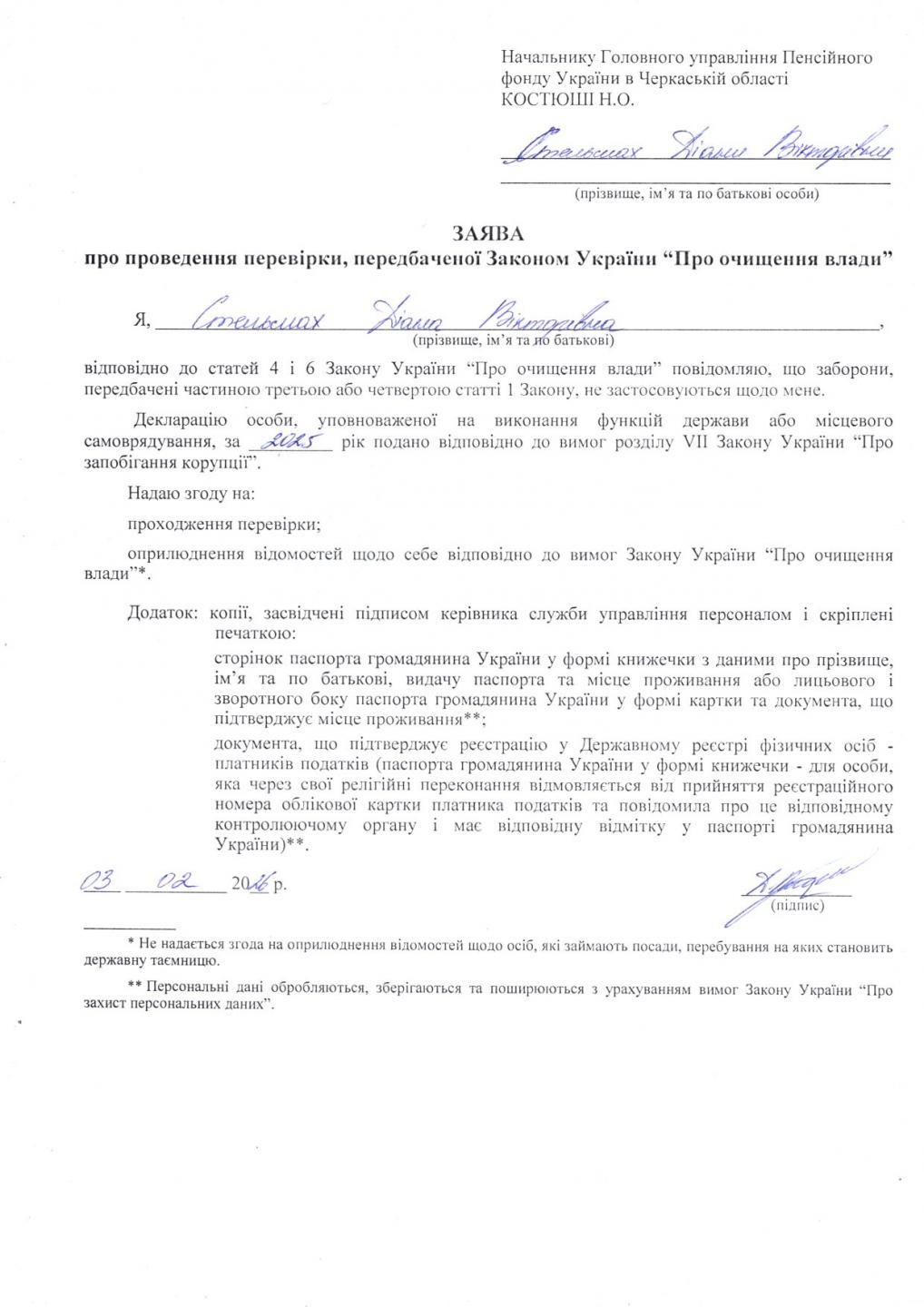 07.01.2026 | Заява Вініцької С. П. Декларація |
