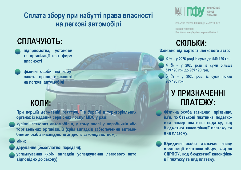 Сплата збору при набутті права власності на легкові автомобілі у 2026 році