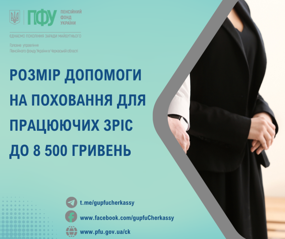 Отже, за страховими випадками, які настали з 13 березня 2026 року (після офіційного опублікування постанови Пенсійного фонду України від 06.02.2026 №6-1 «Про встановлення розміру допомоги на поховання»), розмір допомоги на поховання для працюючих становить 8 500 грн.