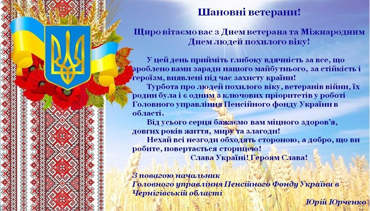 Привітання начальника Головного управління Пенсійного фонду України в Чернігівській області Юрія Юрченка з Днем ветерана та людей похилого віку!