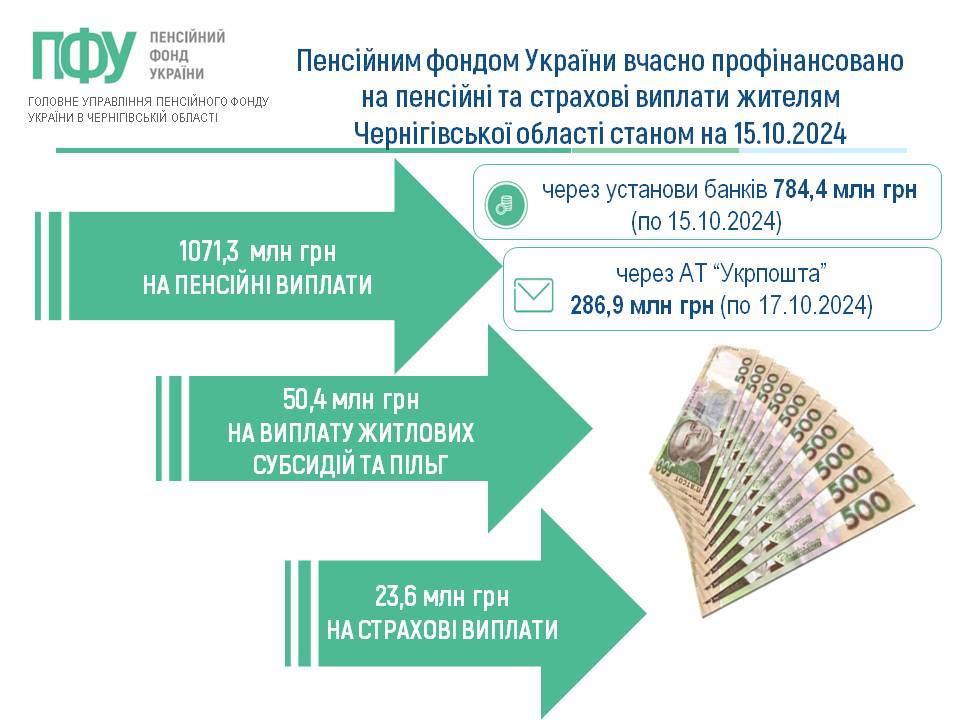 Пенсійним фондом України вчасно профінансовано на пенсійні та страхові виплати жителям Чернігівської області станом на15.10.2024