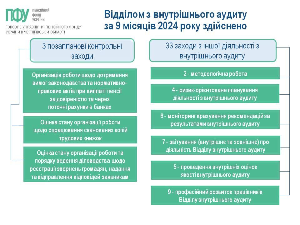 Відділом з внутрішнього аудиту за 9 місяців 2024 року здійснено