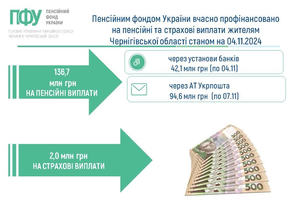 0411 - Пенсійним фондом України вчасно профінансовано  на пенсійні та страхові виплати жителям  Чернігівської області станом на 04.11.2024