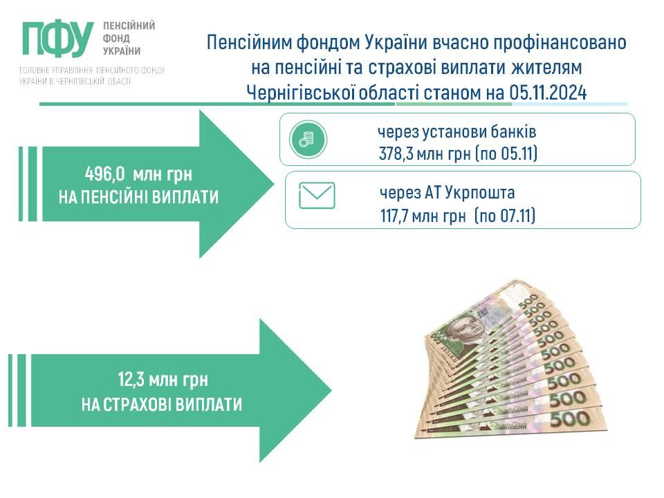 Пенсійним фондом України вчасно профінансовано на пенсійні та страхові виплати жителям Чернігівської області станом на 05.11.2024