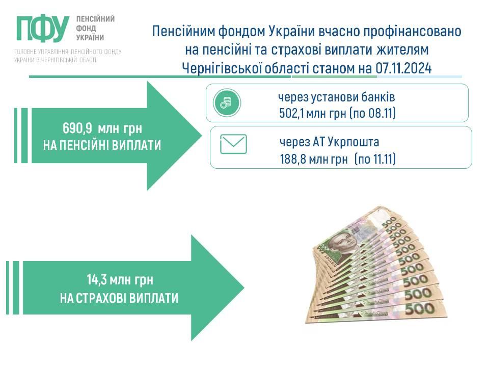 Пенсійним фондом України вчасно профінансовано на пенсійні та страхові виплати жителям Чернігівської області станом на 07.11.2024