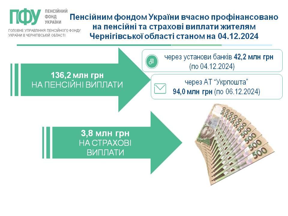 04 - Пенсійним фондом України вчасно профінансовано на пенсійні та страхові виплати жителям Чернігівської області станом на 04.12.2024