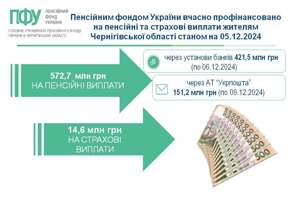 05 - Пенсійним фондом України вчасно профінансовано на пенсійні та страхові виплати жителям Чернігівської області станом на 05.12.2024