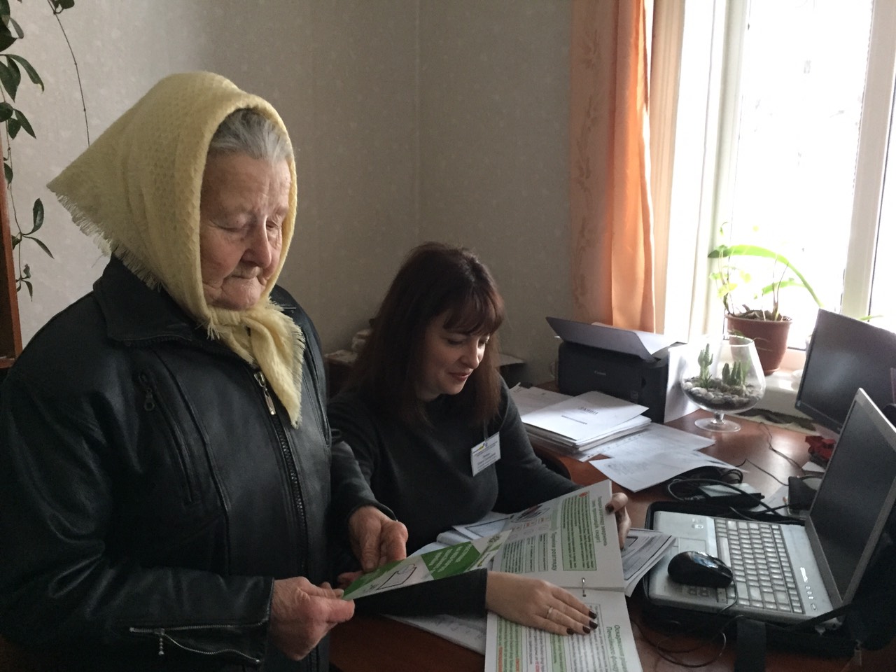 Громадяни ознайомились з процедурою реєстрації на Веб-порталі електронних послуг Пенсійного фонду, за допомогою якого можна дистанційно взаємодіяти з органами Фонду та отримали інформаційні буклети.