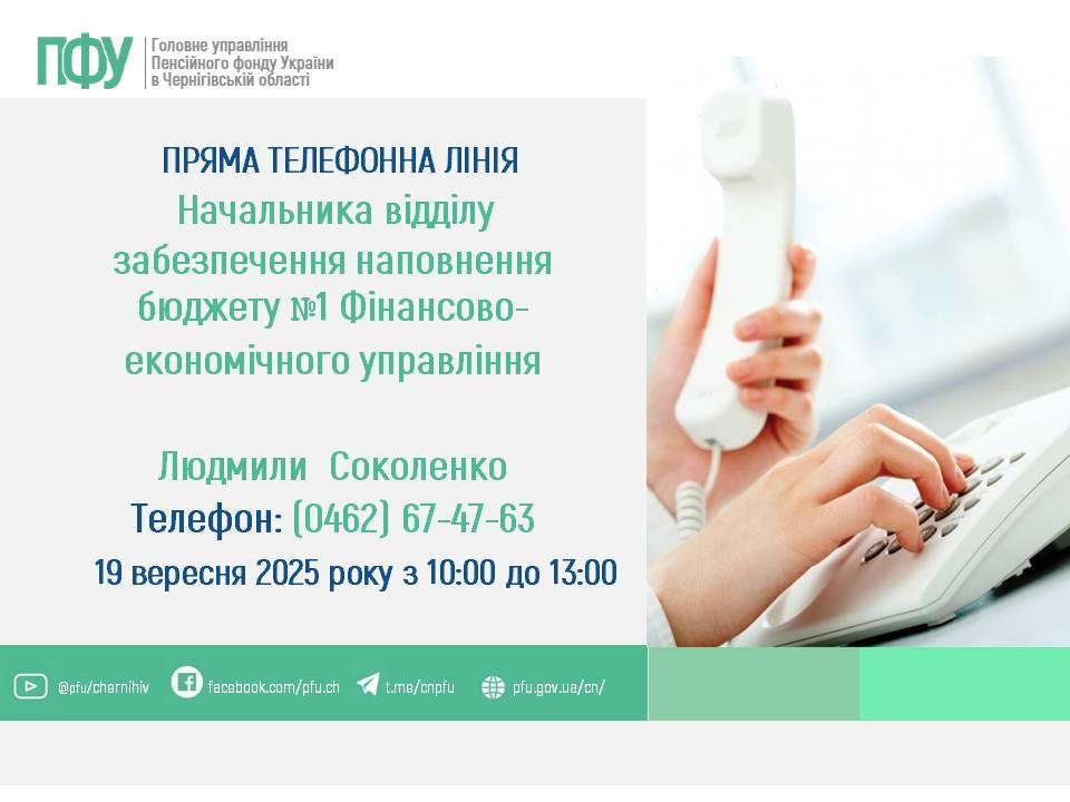 У Головному управлінні Пенсійного фонду України в Чернігівській області 19 вересня відбудеться пряма телефонна гаряча лінія керівництва