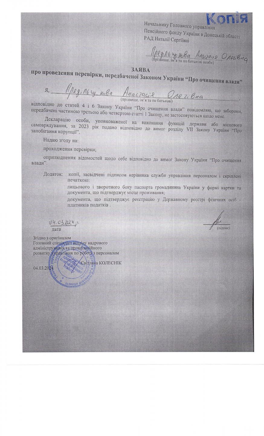 Інформація про початок проходження перевірки посадових осіб Головного управління Пенсійного фонду України в Донецькій області від 04.03.2024