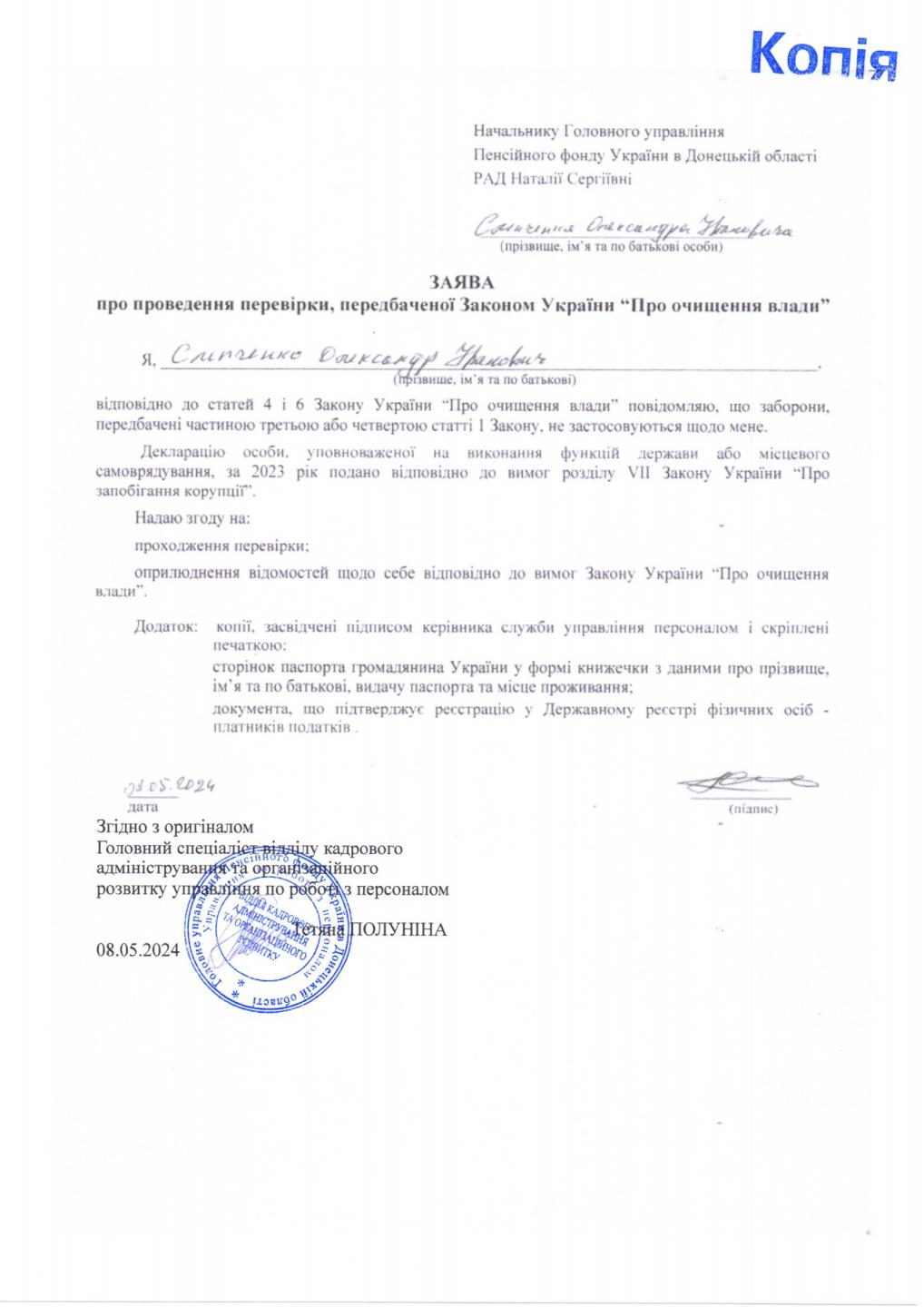 Інформація про початок проходження перевірки посадових осіб Головного управління Пенсійного фонду України в Донецькій області від 08.05.2024