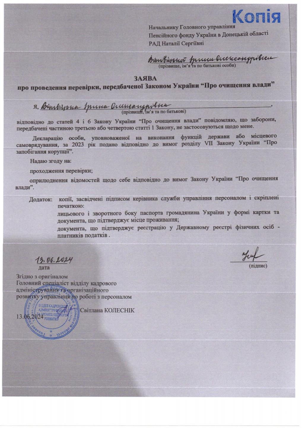 Інформація про початок проходження перевірки посадових осіб Головного управління Пенсійного фонду України в Донецькій області від 13.06.2024
