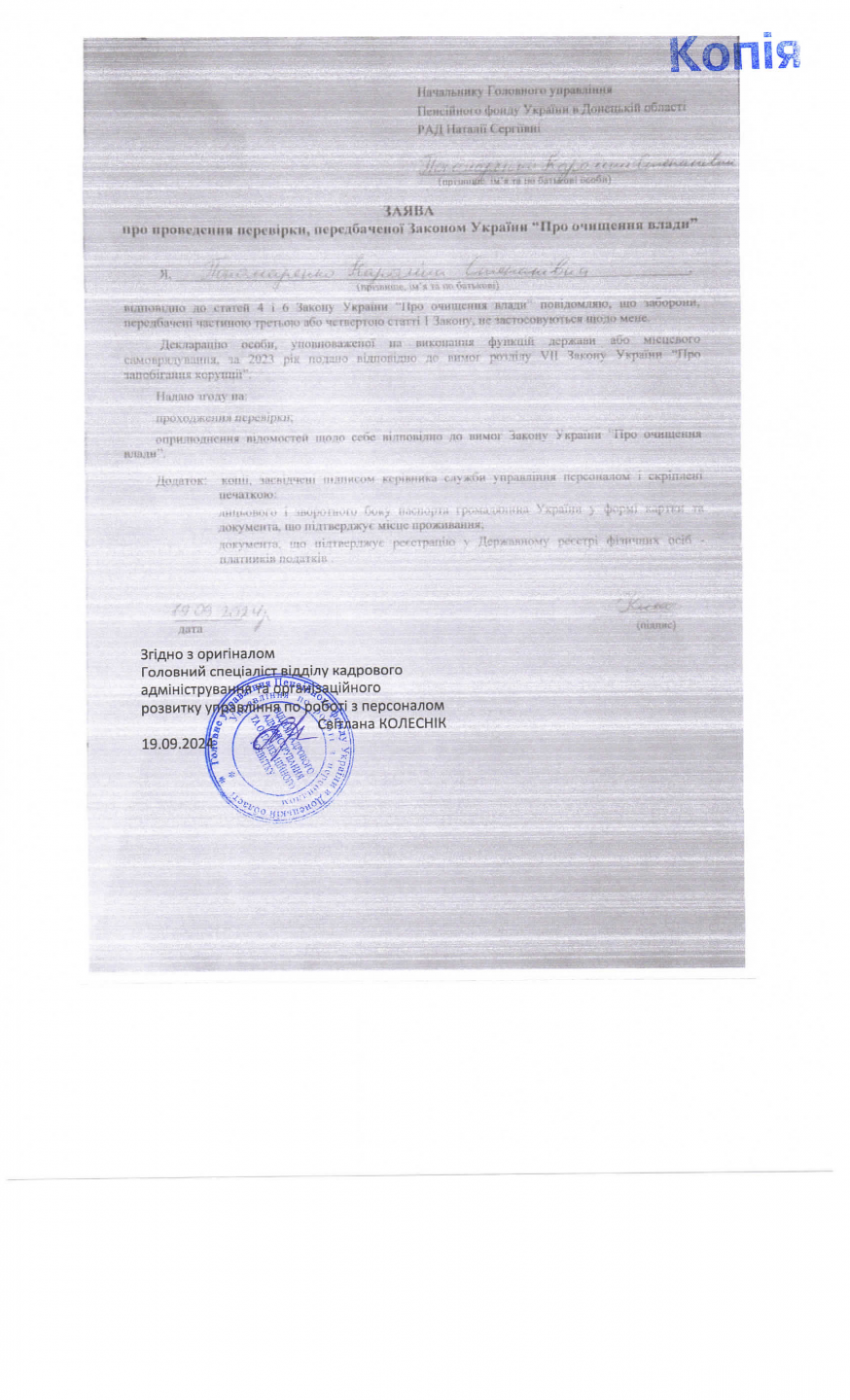 Інформація про початок проходження перевірки посадових осіб Головного управління Пенсійного фонду України в Донецькій області від 19.09.2024