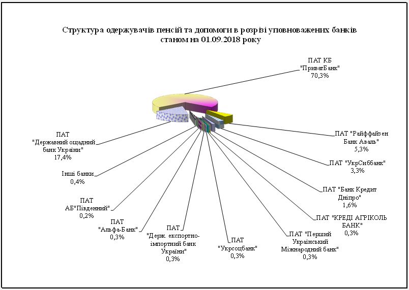 Розподіл банків, уповноважених на здійснення пенсійної виплати за чисельністю пенсіонерів станом на 01.09.2018 року