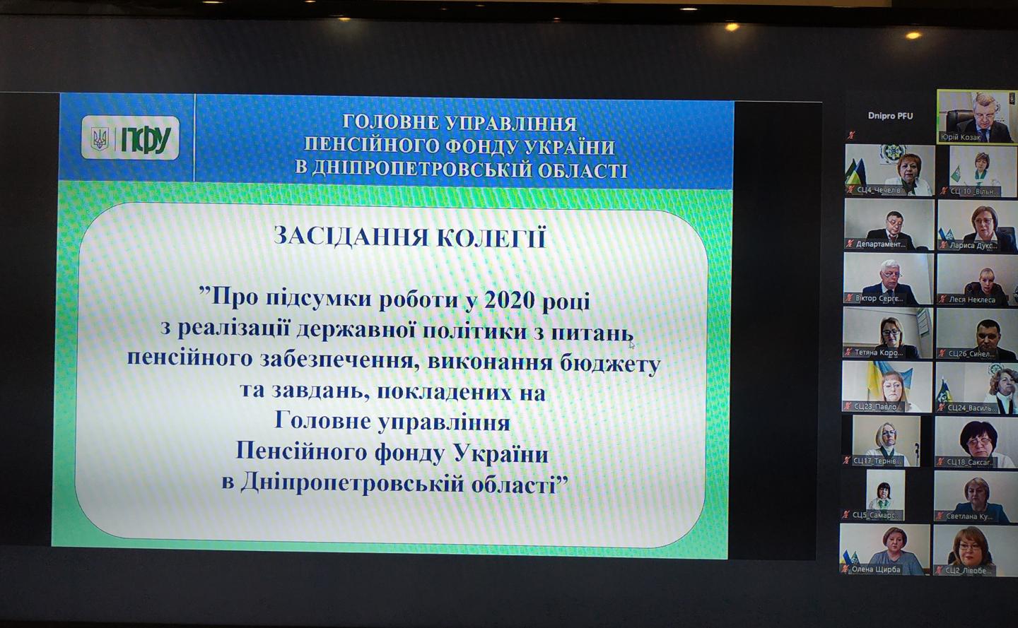 У Головному управлінні Пенсійного фонду України в Дніпропетровській області підсумували результати роботи за 2020 рік. У засіданні колегії взяла участь заступниця Голови правління Пенсійного фонду України Тетяна Король.