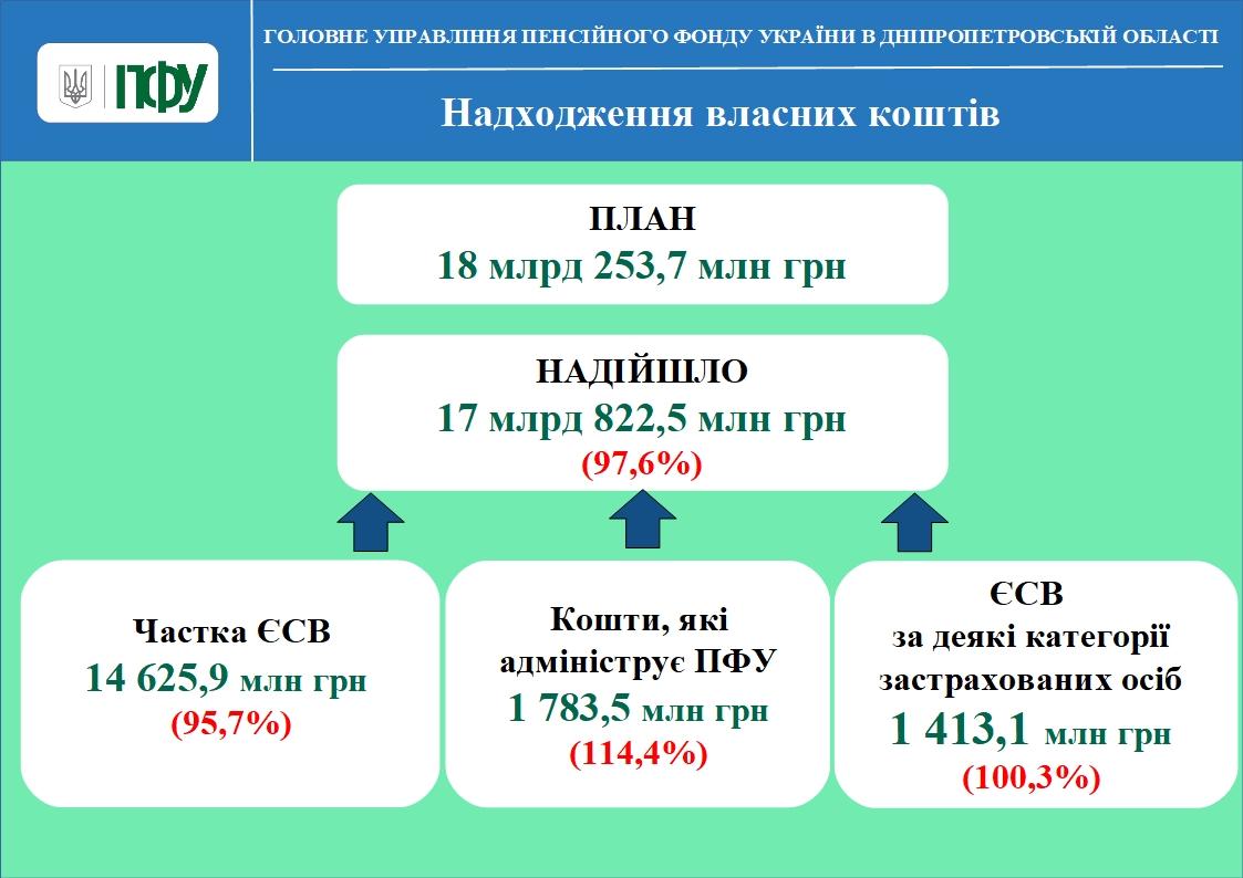 план надходження власних коштів, які адмініструє Пенсійний фонд (Ощадбанк), виконаний на 114,4%, у порівнянні з 2019 роком надходження збільшились на 152,2 млн грн;