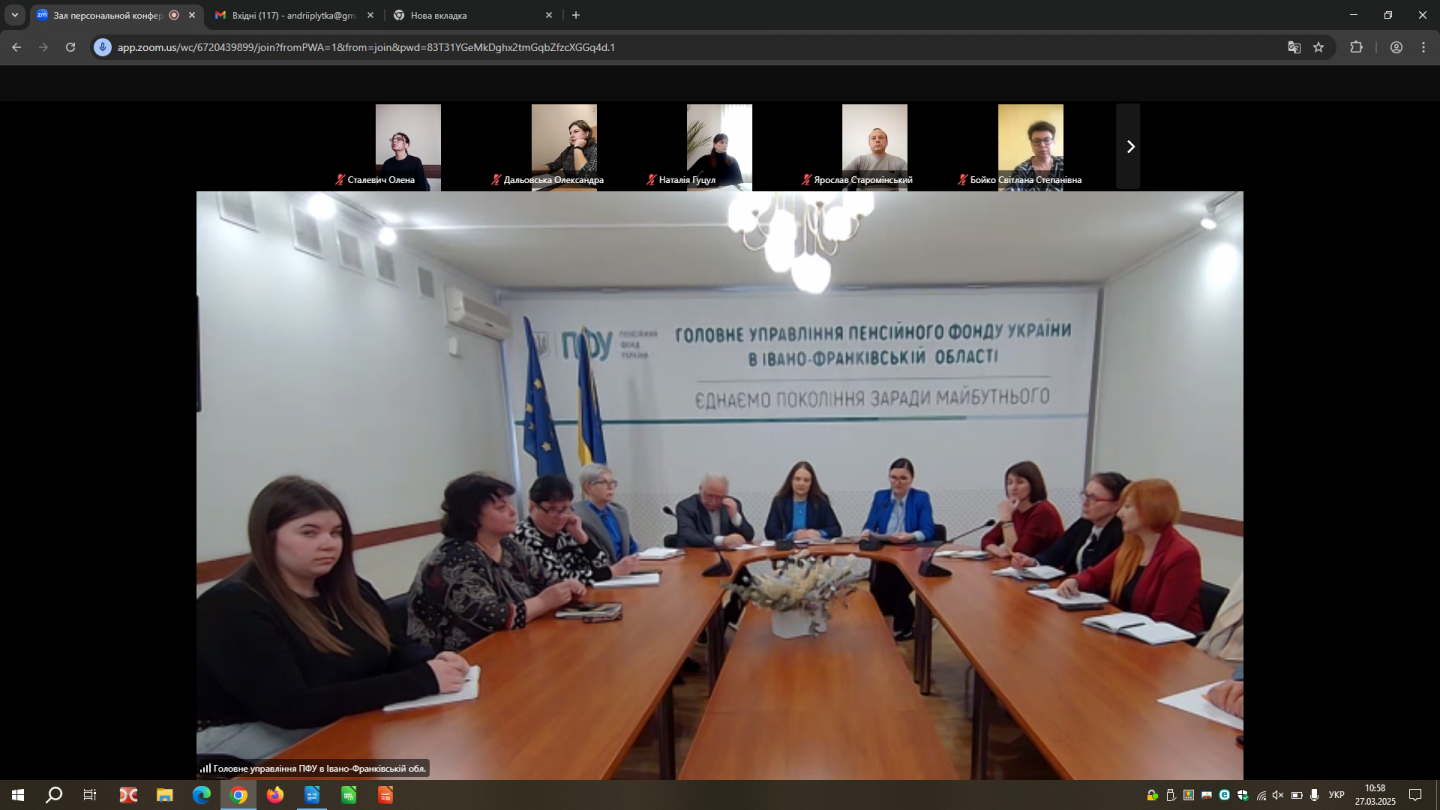 27 березня 2025 року в Головному управлінні відбулася чергова робоча нарада щодо пенсійного забезпечення та соціальних виплат за участю заступника начальника Головного управління Романа Берчака.