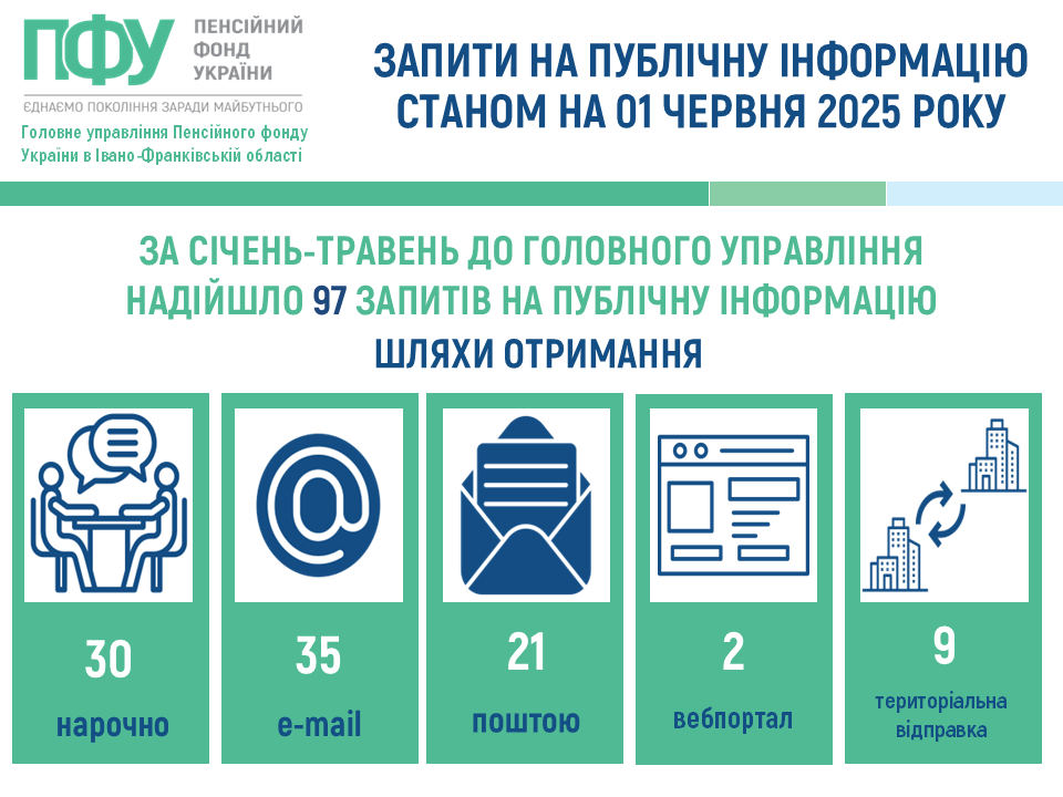 Аналіз опрацьованих документів свідчить, що за січень ‒ травень 2025 року до Головного управління надійшло 97 запитів на публічну інформацію, з них: