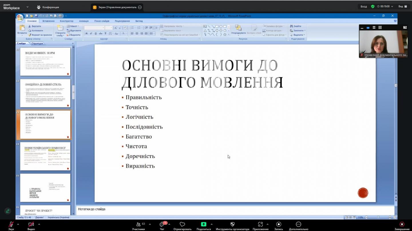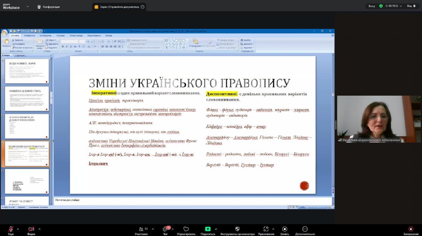 В Головному управлінні проведено онлайн-навчання з працівниками управління документального забезпечення та відповідальними за діловодство у структурних підрозділах на тему «Орфографічні норми української ділової мови».