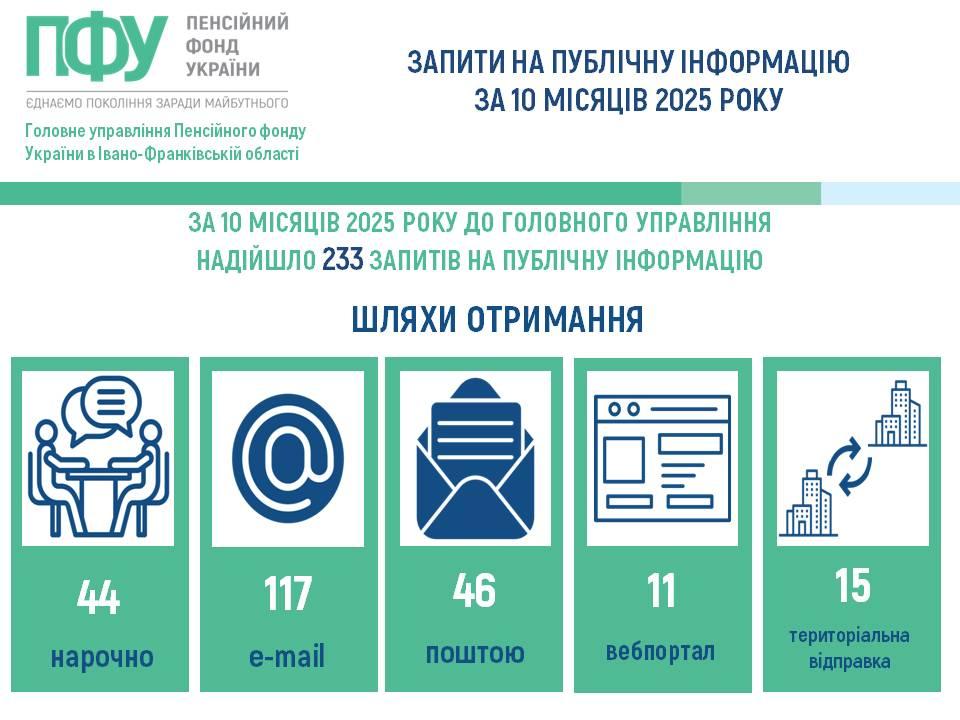 Аналіз опрацьованих документів свідчить, що за січень-жовтень 2025 року до Головного управління надійшло 233 запити на публічну інформацію, з них:
