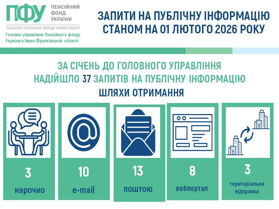 Аналіз опрацьованих документів свідчить, що за січень 2026 року до Головного управління надійшло 37 запитів на публічну інформацію, з них:…