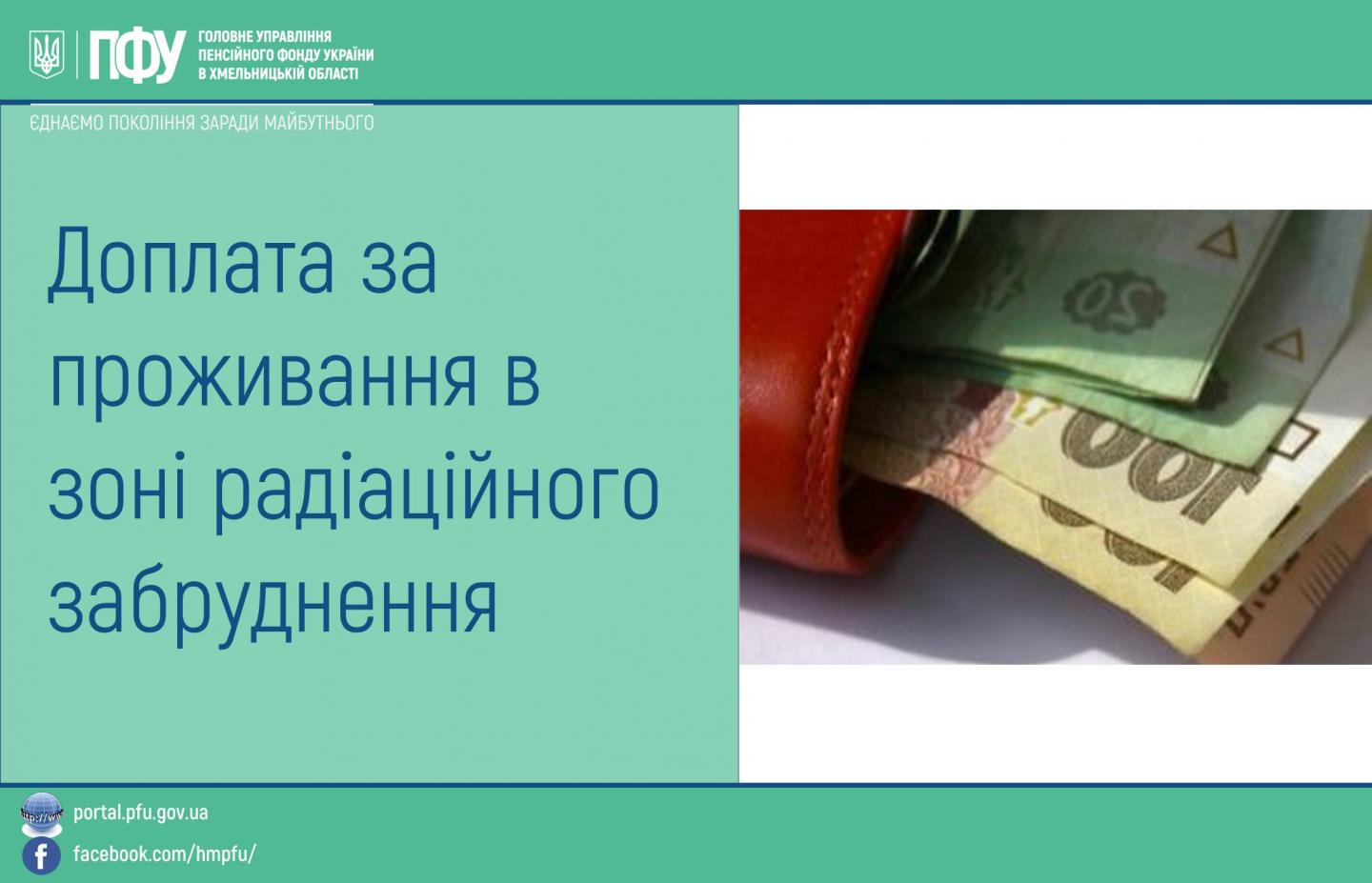 Умови встановлення доплати: такі громадяни проживали або працювали в зоні безумовного (обов’язкового) відселення або в зоні гарантованого добровільного відселення станом на 26 квітня 1986 року чи у період з 26 квітня 1986 року до 1 січня 1993 року та у зв’язку з цим мають статус особи, яка постраждала внаслідок Чорнобильської катастрофи.