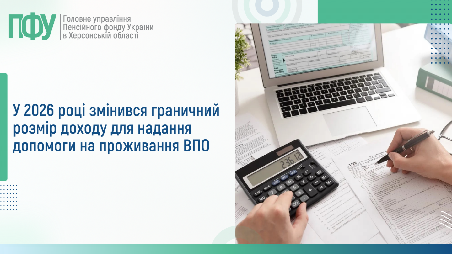 Оскільки 1 січня 2026 року розмір прожиткового мінімуму для осіб, які втратили працездатність, становить 2 595 грн, то допомога на проживання ВПО продовжується на наступний період за умови, що сукупний дохід на одного отримувача в сім’ї не перевищує 10 380 грн (2 595 грн х 4).