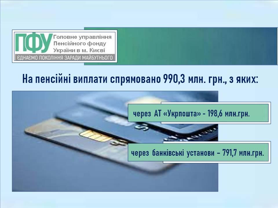 - на виплату через відділення АТ «Укрпошта» – 198,6 млн. грн.;
