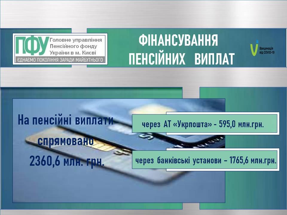13 жовтня 2021 року Пенсійним фондом України, згідно із затвердженим графіком, продовжується фінансування пенсій жовтня. Пенсіонерам міста Києва на пенсійні виплати спрямовано 2360,6 млн. грн.: