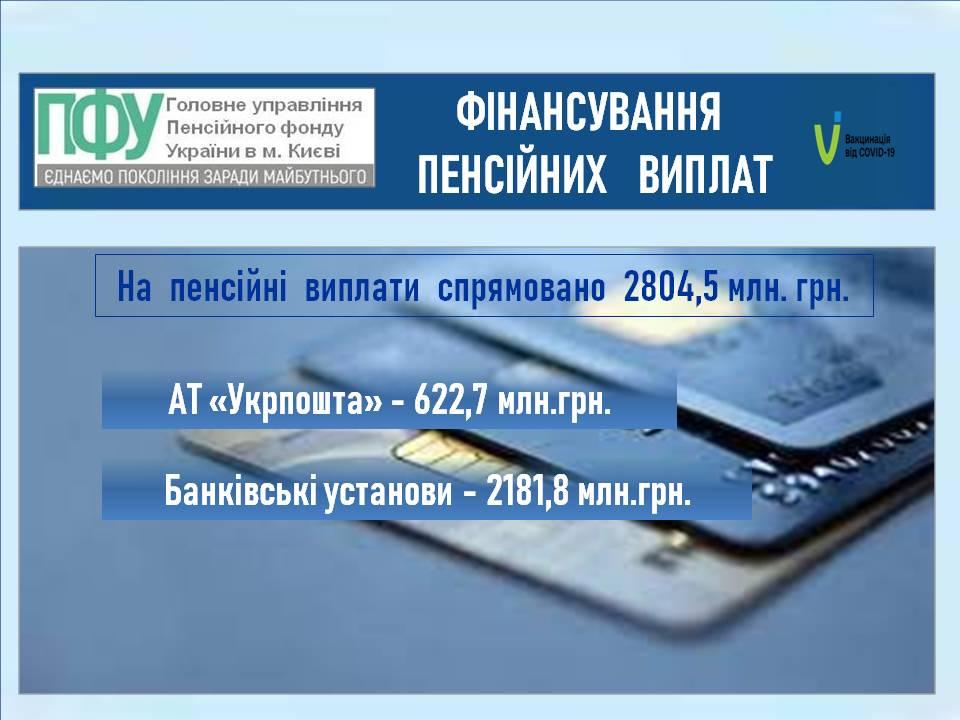 Станом на 18 жовтня 2021 року Пенсійним фондом України, згідно із затвердженим графіком, пенсіонерам міста Києва на пенсійні виплати спрямовано 2804,5 млн. грн.: