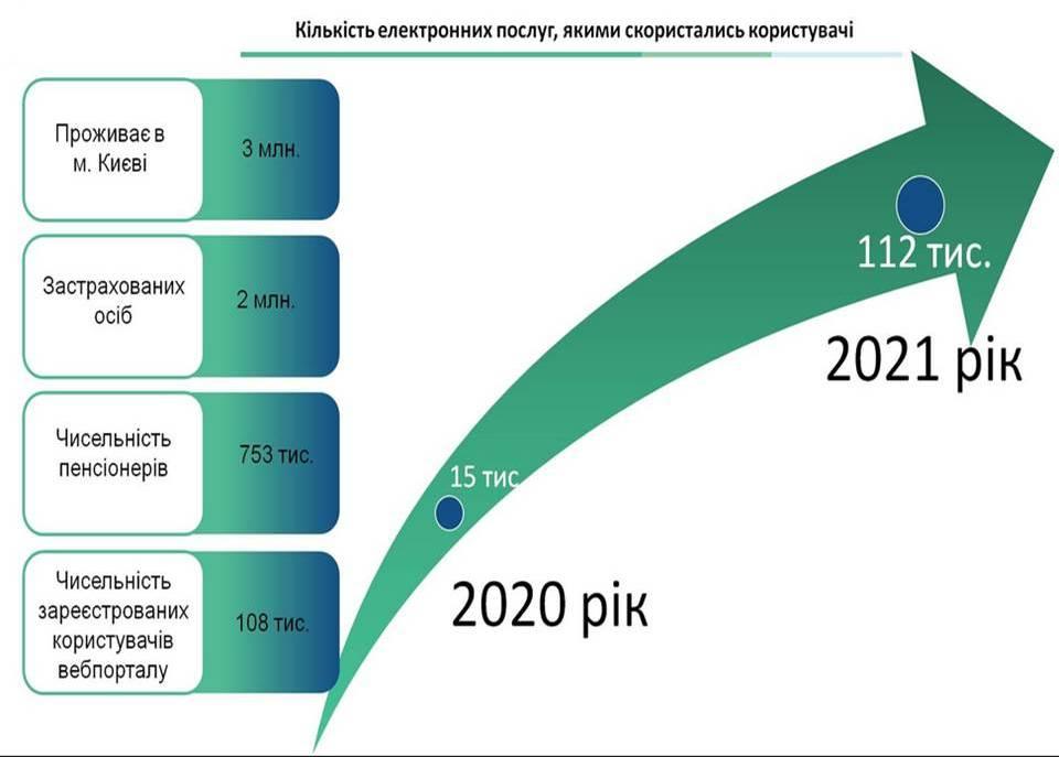 Від загальної кількості одержувачів пенсій по м. Києву, найбільшу частину складають: пенсії за віком 77%, пенсії по інвалідності 9 %, в разі втрати годувальника – 3,23%, за вислугу років – 1,5%