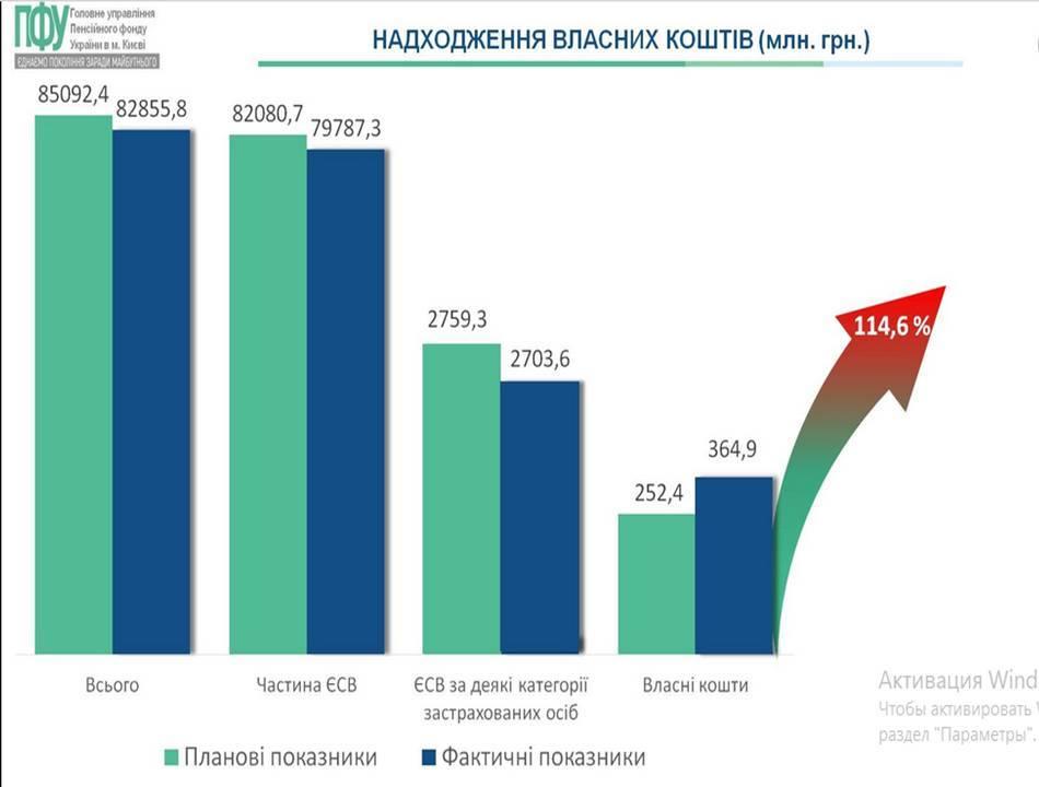 – на 114,6% зросли надходження власних коштів для здійснення пенсійних виплат;