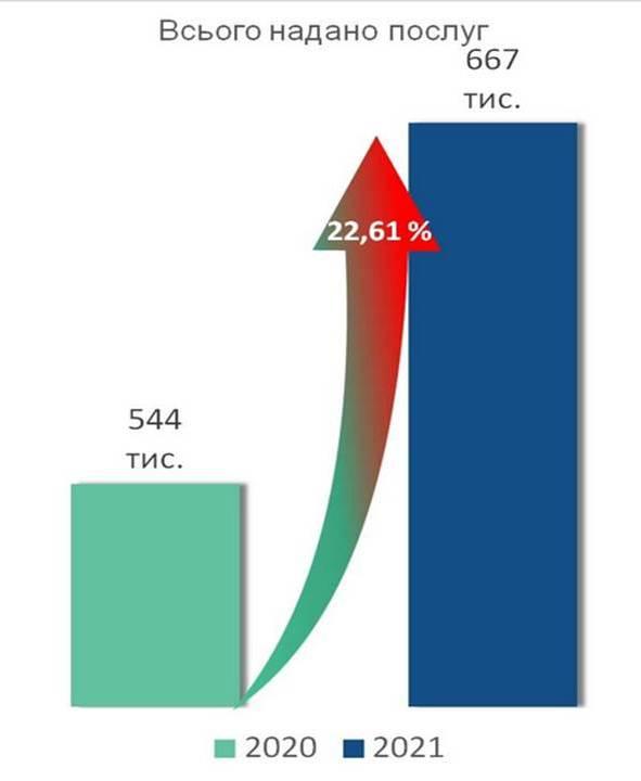 – кількість наданих послуг громадянам збільшилась майже на 23%;