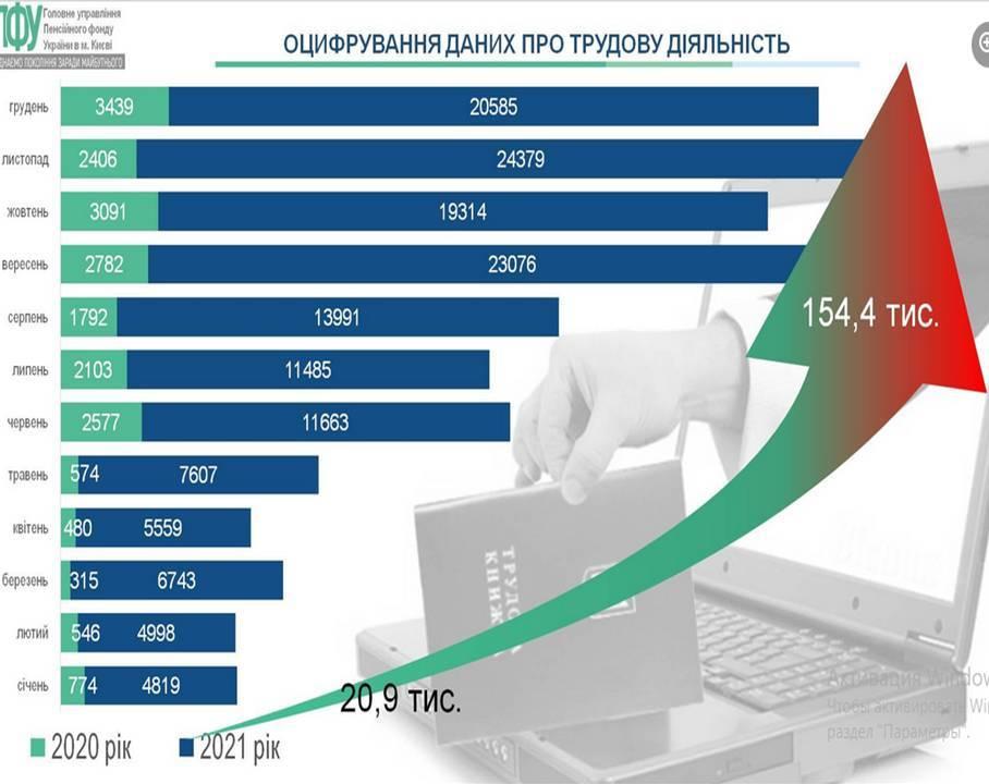 – кількість поданих заяв на оцифрування скан-копій документів про трудову діяльність в 2021 році зросла на 740%;