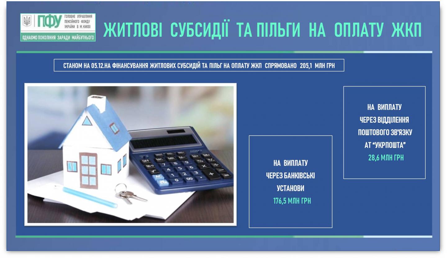 На фінансування житлових субсидій та пільг на оплату ЖКП спрямовано 205,10 млн. грн: