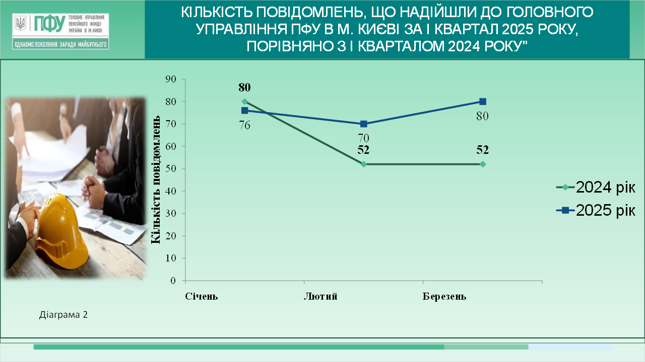 Загальна кількість повідомлень за І квартал 2025 року збільшилася на 34 у порівнянні з аналогічним періодом 2024 року (діаграма 2)