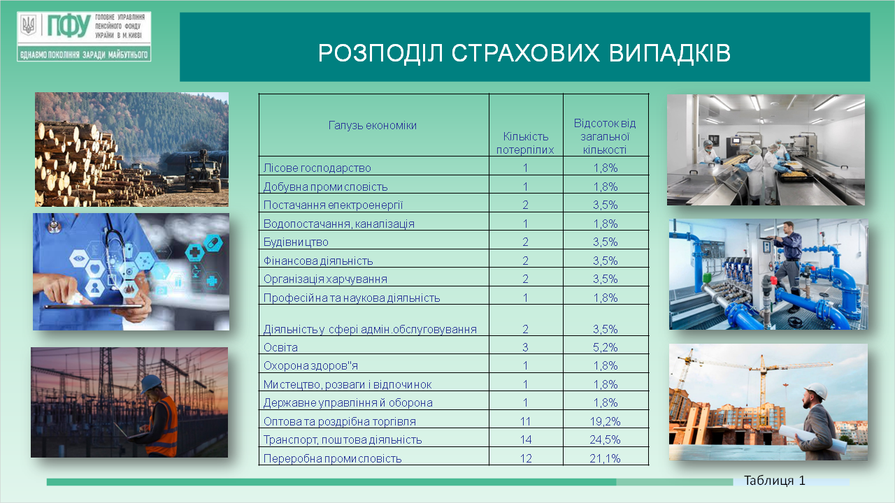 Найбільше потерпілих осіб у страхових нещасних випадках зареєстовано у таких галузях: