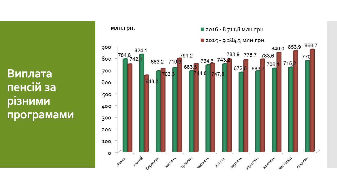 За 2016 рік виплачено пенсій за різними пенсійними програмами на суму 8,7 млрд.грн.