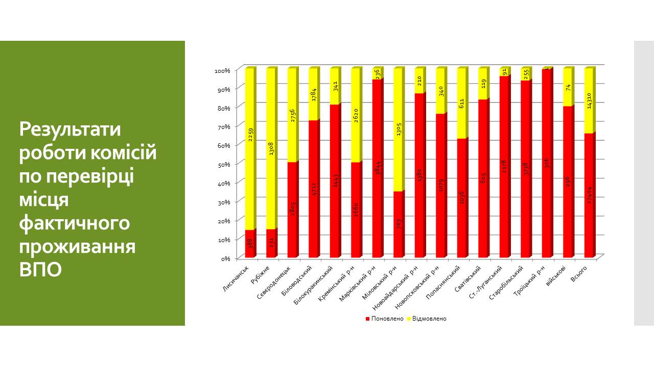 Найбільшу чисельність внутрішньо переміщених осіб зареєстровано в управліннях в м.Сєвєродонецьку, Біловодському та Марківському районах.