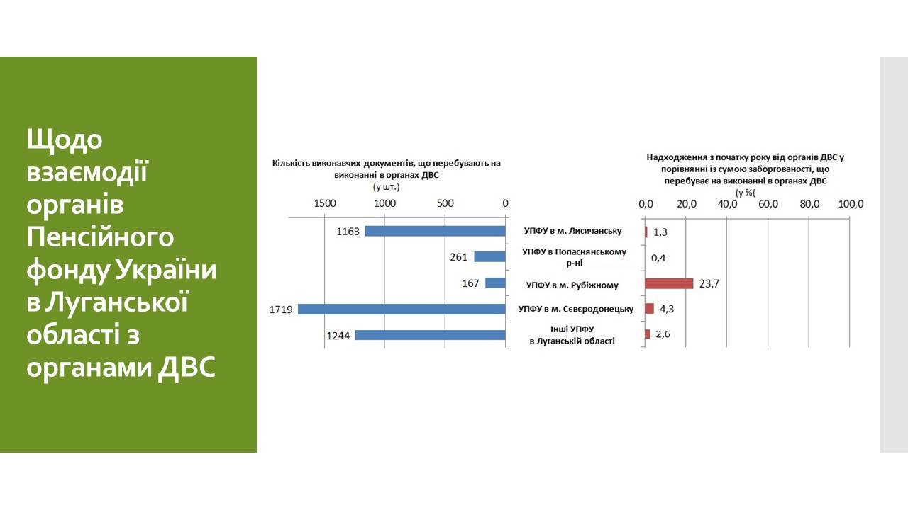 До органів державної виконавчої служби направлено 652 виконавчих документа по стягненню 46,5 млн.грн., за якими стягнуто 6,9 млн.грн. Завершено провадження по 4 підприємствам-банкрутам з сумами боргу до Пенсійного фонду 9,4 млн. грн.