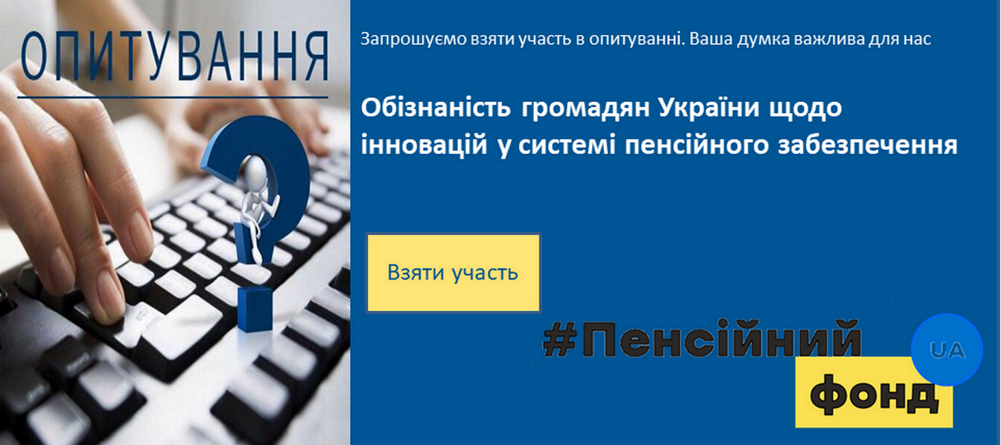 Пенсійний фонд України у співпраці з Державною установою “Урядовий контактний центр” проводить дослідження громадської думки на тему: “Обізнаність громадян України щодо інновацій у системі пенсійного забезпечення”.