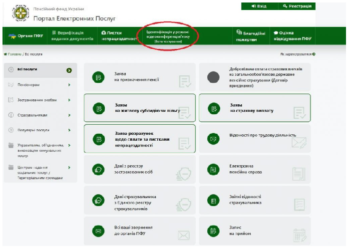 Щоб записатись на проходження ідентифікації у режимі відеоконференцзв’язку через вебпортал Пенсійного фонду України необхідно виконати наступні кроки: