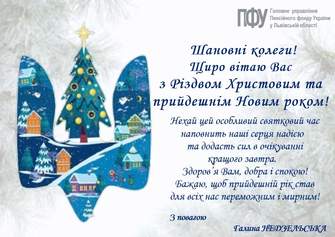 Привітання начальника Головного управління Пенсійного фонду України у Львівській області з Різдвом Христовим та прийдешнім Новим роком