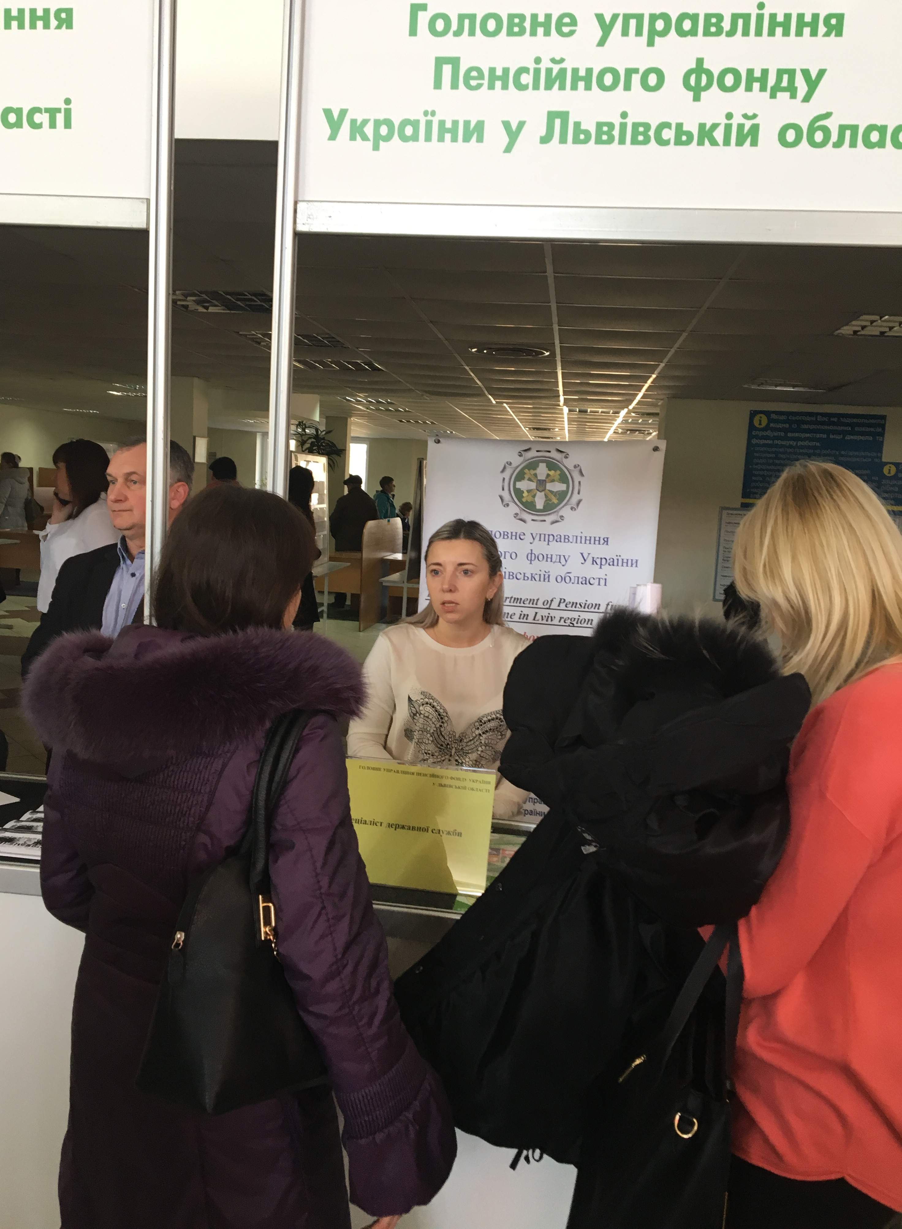 До роботи Ярмарку долучилися представники управління персоналу головного управління Пенсійного фонду області. Під час спілкування із студентами та незайнятими громадянами розповіли про переваги роботи на державній службі, зазначивши, що в органах Пенсійного фонду в області можна підібрати престижне місце роботи.