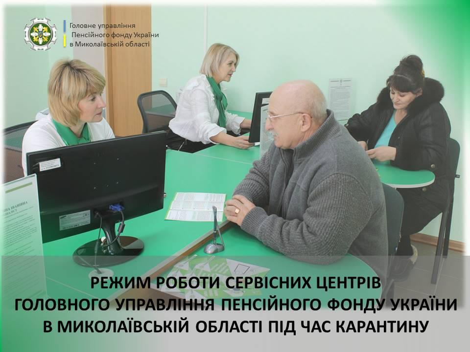 Режим роботи сервісних центрів Головного управління Пенсійного фонду України в Миколаївській області під час карантину