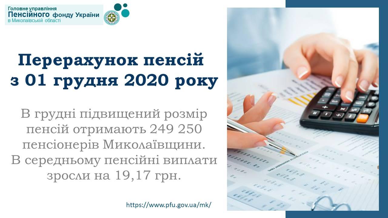 З 1 грудня 2020 року органами Пенсійного фонду України в Миколаївській області буде проведено перерахунок пенсії в зв’язку із зміною розміру прожиткового мінімуму відповідно до Закону України «Про Державний бюджет України на 2020 рік».