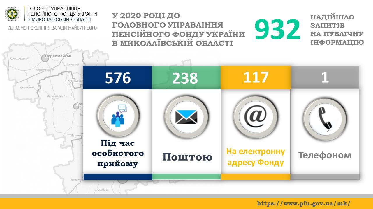 Підсумки роботи із запитами на інформацію в Головному управлінні Пенсійного фонду України в Миколаївській області за 12 місяців 2020 року