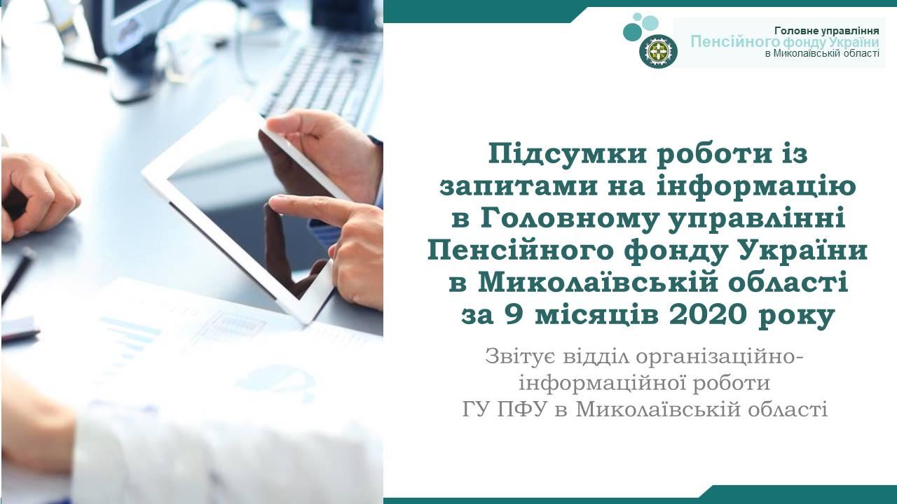 Підсумки роботи із запитами на інформацію в Головному управлінні Пенсійного фонду України в Миколаївській області за 9 місяців 2020 року