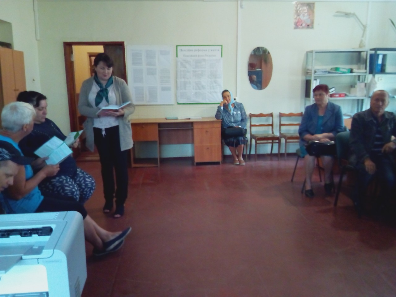 Головний спеціаліст Любашівського відділу обслуговування громадян управління обслуговування громадян Головного управління Пенсійного фонду України в Одеській області Інна Паламарчук 20 вересня провела для жителів Савранського району урок у «Школі майбутнього пенсіонера».